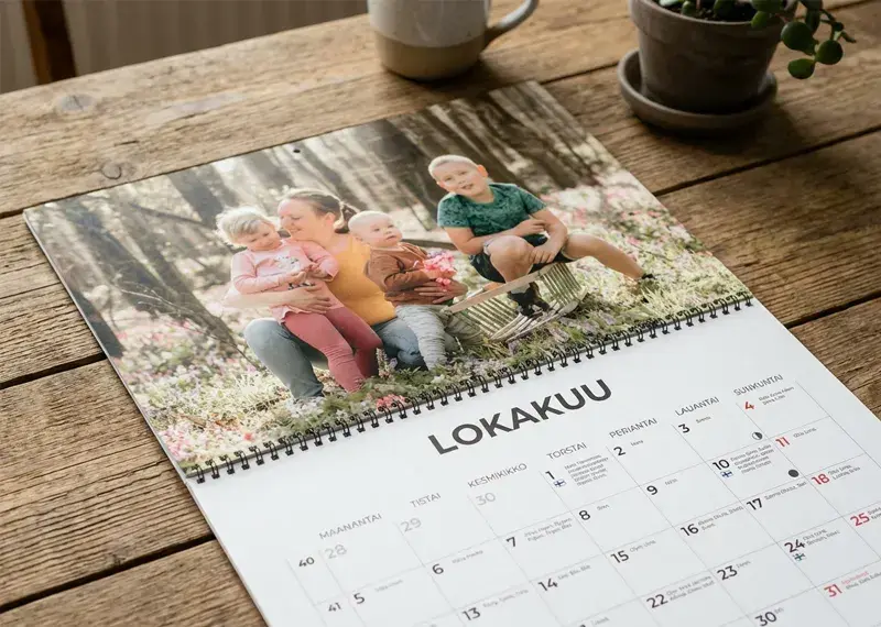 Kuvaseinäkalenteri tekee arjesta kauniimman ja muistuttaa ihanista hetkistä pitkin vuotta. Lapsen ensimmäiset hymyt, koiran päähänpistot, kesäloman rantakuvat, mökkiaamun sumut...